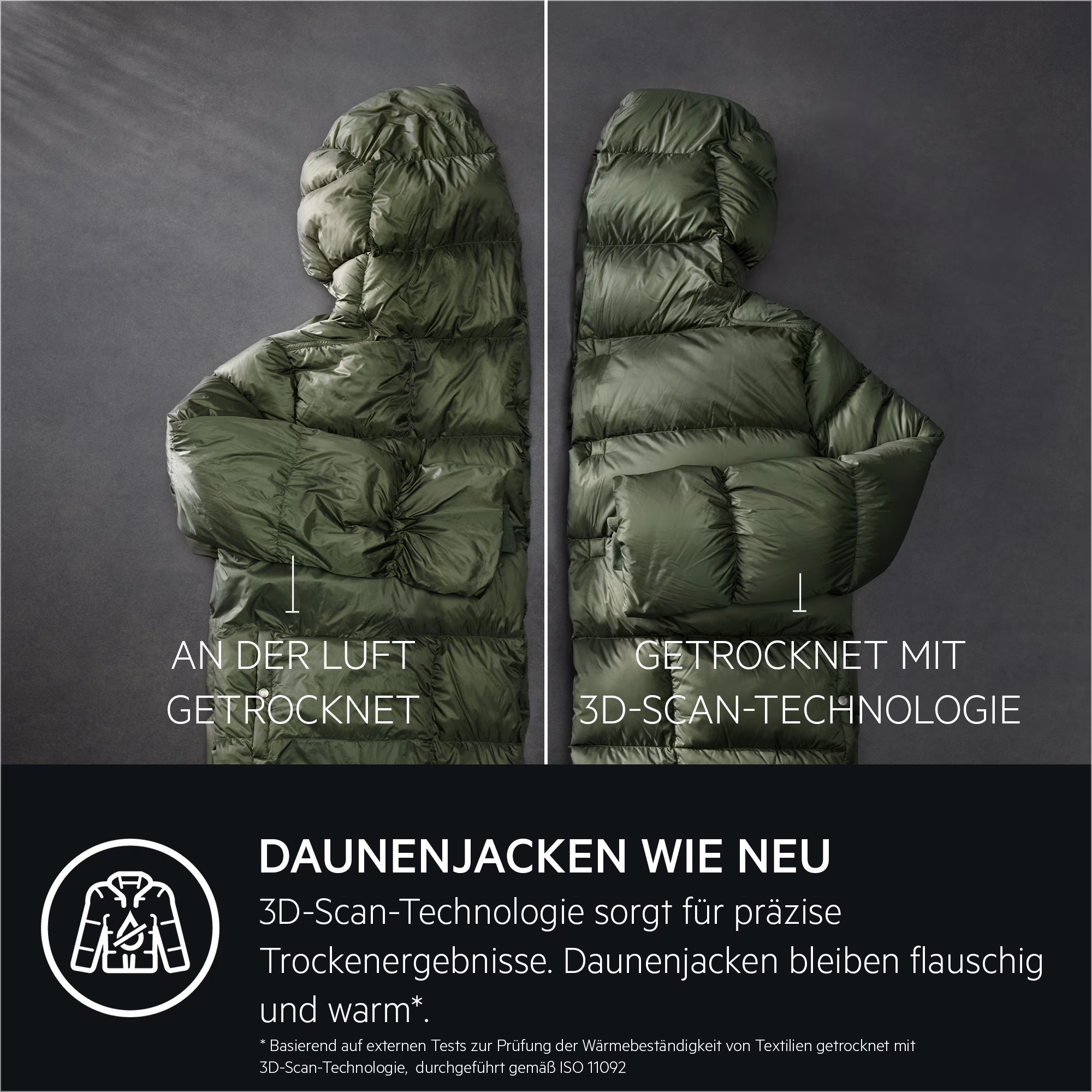· GARANTIERT KEIN EINLAUFEN - AbsoluteCare nutzt die Wärmepumpentechnologie zusammen mit präzise gesteuerten Trommelbewegungen. Wolle läuft nicht ein, Seide bleibt in Form und die wasserabweisende Ausrüstung deiner Outdoor-Bekleidung wird wieder hergestellt