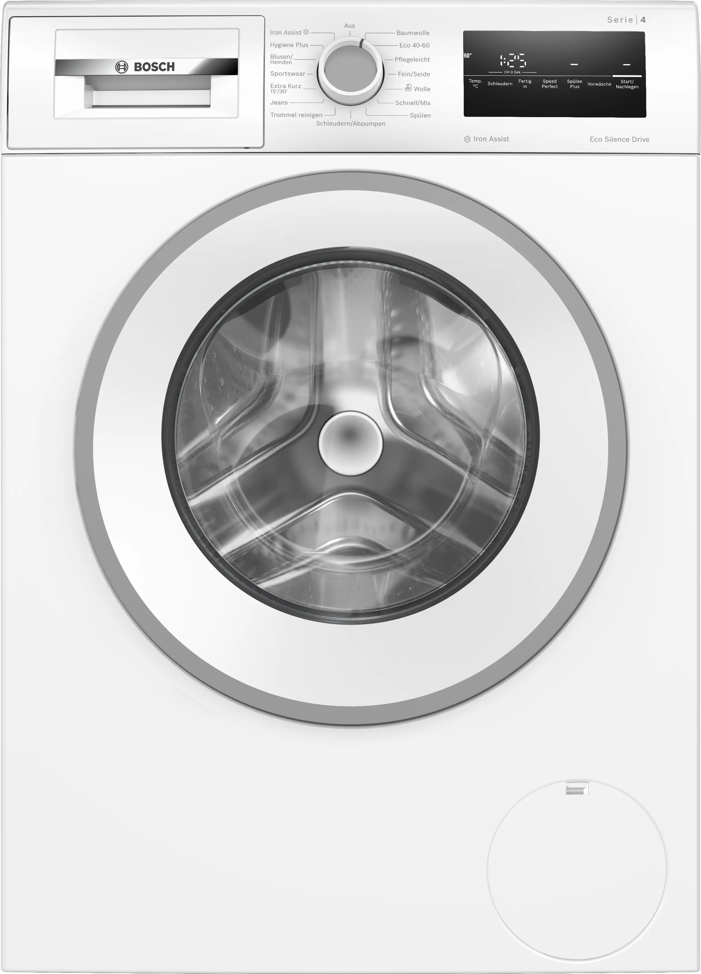 Waschmaschine mit Iron Assist zur Reduzierung deines Bügelaufwands und einem langlebigen EcoSilence Drive Motor. • Iron Assist: reduziert Knitterfalten bis zu 50%. 3 • Energie-Effizienzklasse A: Energie sparen mit der effizientesten Klasse A. • Active Water Plus: automatische Beladungserkennung für eine präzise Regulierung des Wasserverbrauchs. • AquaStop: deine Bosch Garantie gegen Wasserschäden. • Speed Perfect: perfekte Sauberkeit mit bis zu 65 % Zeitersparnis.