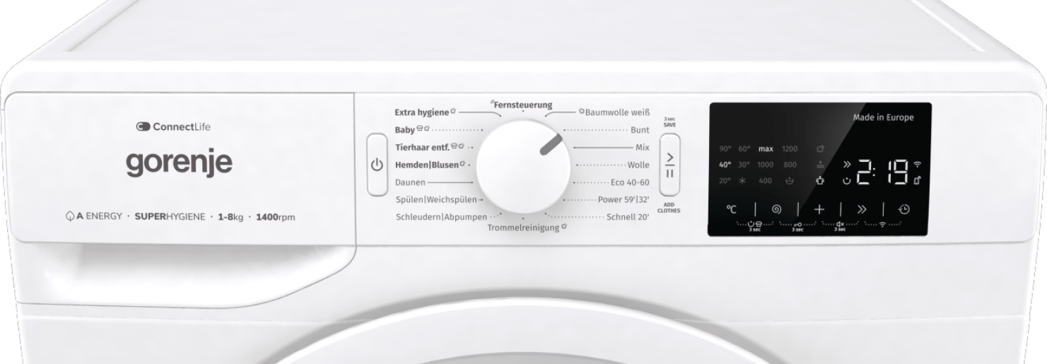 Ausstattung 10% besser als Energieeffizienzklasse A Nachlegefunktion AddClothes Kindersiche…