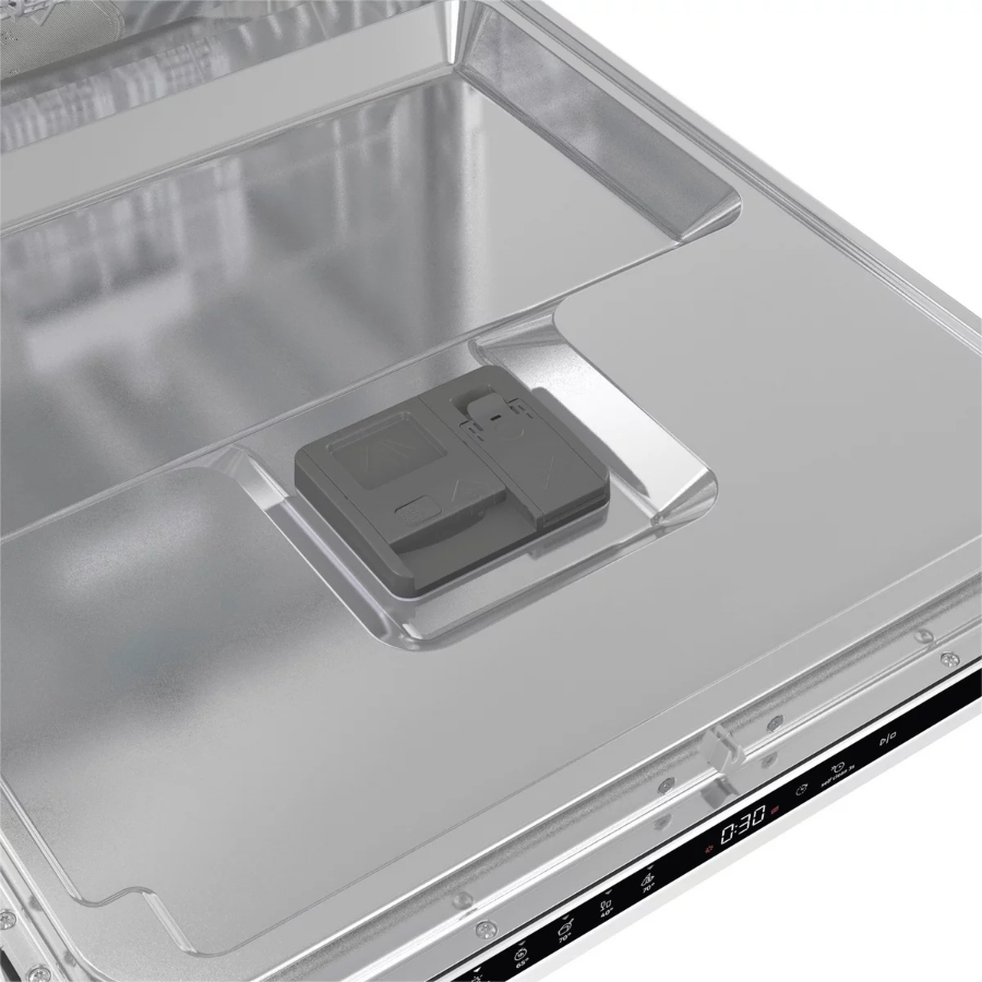 Der GV642C60 ist ein moderner Einbau-Geschirrspüler, der für eine Standardnische von 60 cm Breite konzipiert ist. Da er vollintegriert ist, verschwindet die Bedienblende im Inneren an der Oberseite der Tür, sodass das Gerät optisch komplett hinter deiner Küchenfront verschwindet.