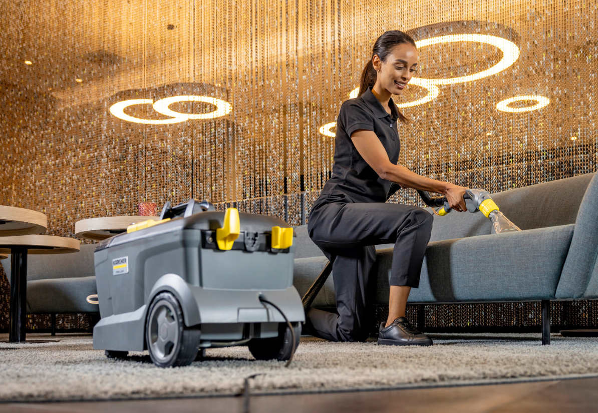 Perfekte Tiefenreinigung textiler Oberflächen. Schnelle Trocknung und Wiederbegehbarkeit dank sehr guter Rücksaugleistung. Exzellentes Reinigungsergebnis mit sichtbarem Vorher-Nachher-Effekt.