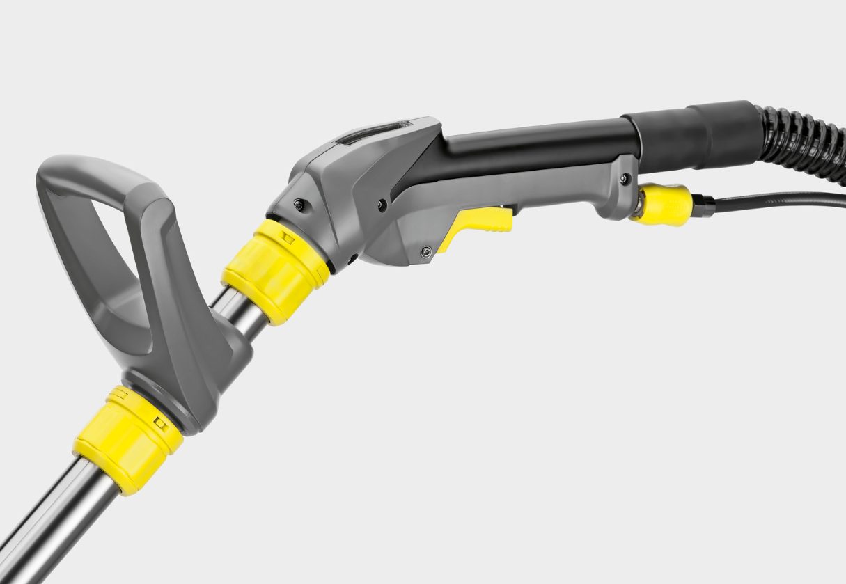 Flexible Sauglippe für optimalen Saugwinkel und beste Trocknungsergebnisse. 240 mm breite Bodendüse mit integriertem Sprüh-/Saugrohr. Ergonomischer Zweihandgriff für mehr Anwendungskomfort.