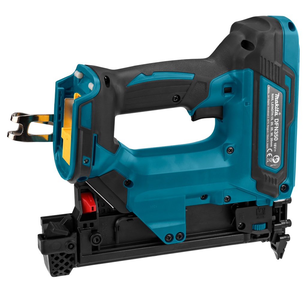 Der Makita DFN350Z Stauchkopfnagler ist ein schlauchloser Nagler, ideal für Nacharbeiten, End- und Trimmarbeiten. Mit einem eingebauten Kompressor bietet er kabellose Mobilität und ist kompatibel mit 1,2 mm Stauchkopfnägeln von 15 bis 35 mm Länge. Der Sicherheitsschalter und das LED-Licht sorgen für eine sichere und präzise Anwendung. Der Tiefentladeschutz schützt den Akku und verlängert die Lebensdauer des Naglers. Der Makita DFN350Z Stauchkopfnagler ist ein unverzichtbares Werkzeug für professionelle Handwerker, die Wert auf hohe Flexibilität, Sicherheit und Effizienz legen.