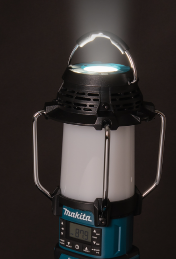 Vielseitige 360° Beleuchtung und FM-Radio für unterwegs Das Makita DMR057 Akku-Radio mit Laterne kombiniert e…