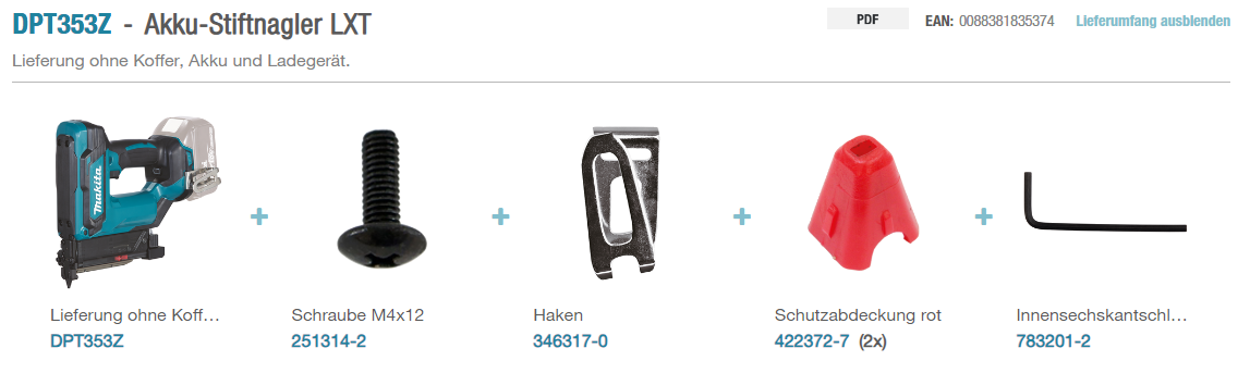 Produktinformationen "Makita DPT353Z Akku-Stiftnagler LXT"