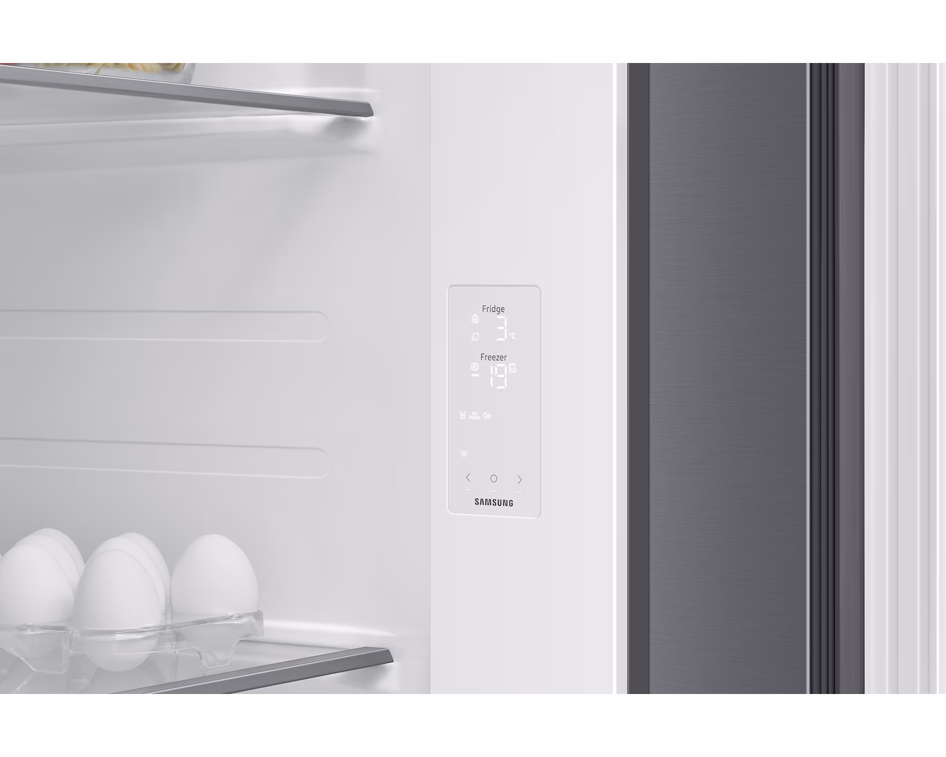 Der Samsung RS70F65KETEF ist ein eleganter Side-by-Side Kühlschrank im Mattschwarz-Look, der sich nahtlos in moderne Küchen einfügt. Er bietet ein enormes Fassungsvermögen und nutzt die SpaceMax-Technologie, bei der besonders dünne Gerätewände mit hoher Isolierwirkung für mehr Innenraum sorgen, ohne die Außenmaße zu vergrößern.