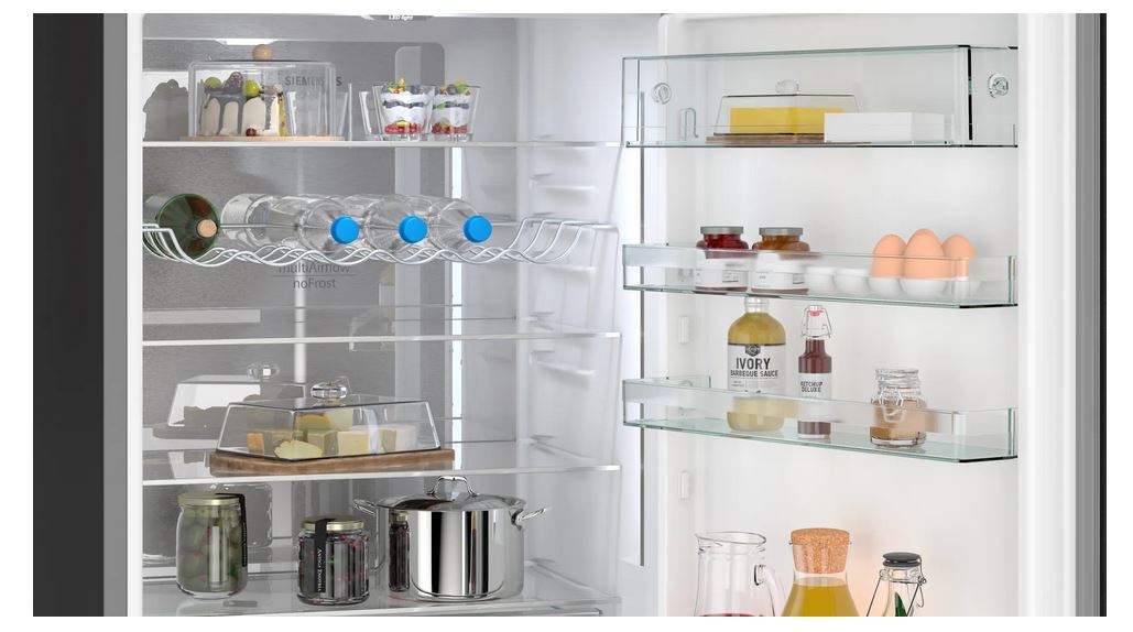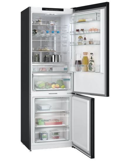 Frisch und pflegeleicht Erleben Sie die Siemens KG49NSBBF iQ700 Kühl-Gefrier-Kombination in edlem Schwarz mit…