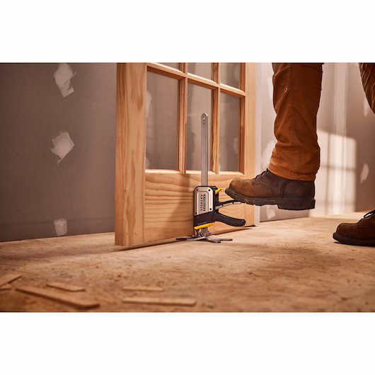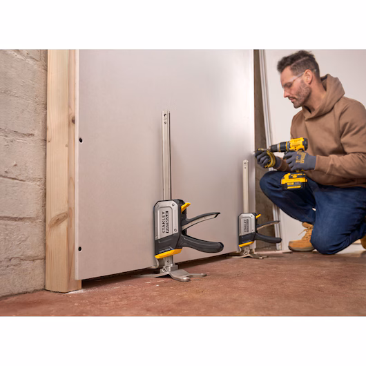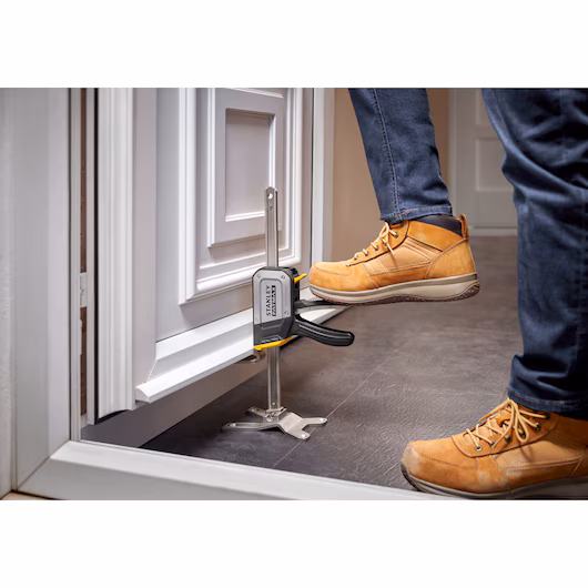 Das STANLEY® FATMAX® Einhand-Montagewerkzeug TradeLift™ Doppelpack ermöglicht eine Ein-Personen-Arbeit bei professionellen Anwendungen mit einer hohen Hubkraft von bis zu 150 kg pro Gerät und reduziert den Kraftaufwand dank Fußbedienung